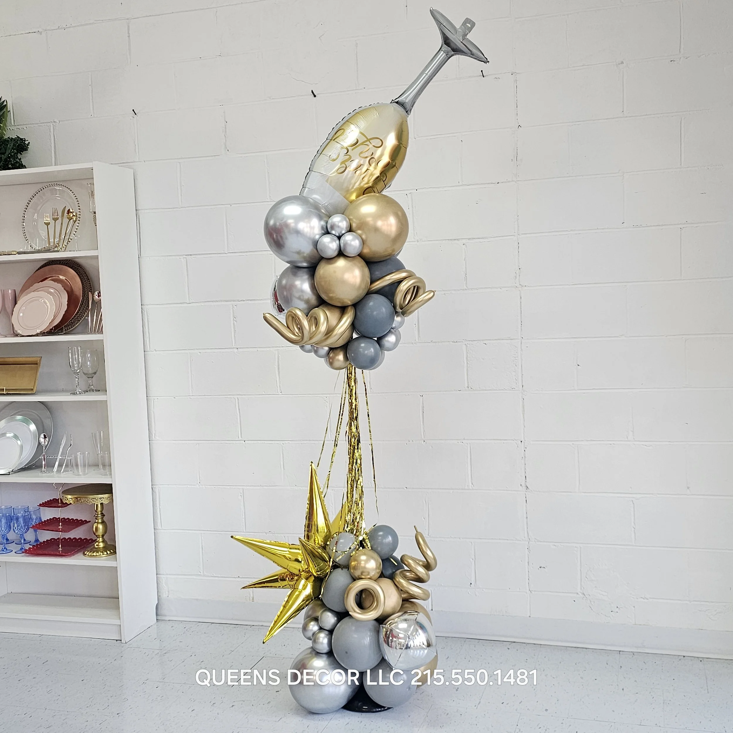 QUEENS PARTY POP WITH JUMBO BALLOON TOPPER 50 mini balloons with confetti in a jumbo balloon pop with accent pieces. Available for pick up at our showroom or Delivery.